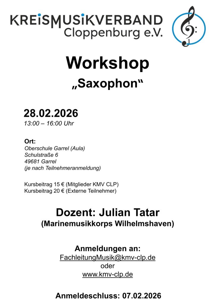 Saxophon Workshop im Februar 2026
